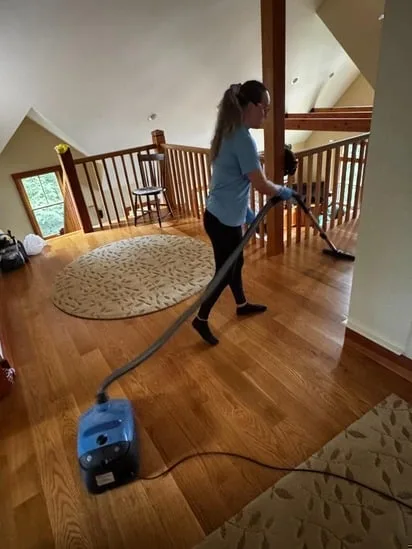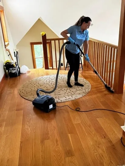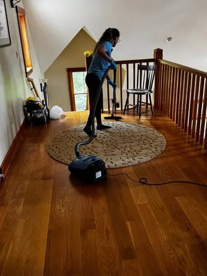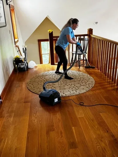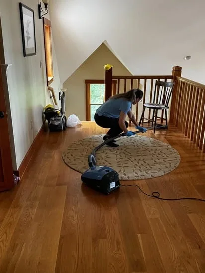 This project involved thorough hardwood floor vacuuming throughout an upper-level hallway. Additionally, the work focused on consistent coverage of both the wooden surface and the area rug. As a result, the cleaning process ensured the removal of dust and debris while maintaining the condition of the flooring.